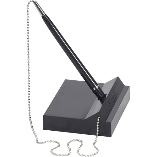 Security pen features a secure design to prevent users from walking away with the pen. Self-adhesive base allows simple installation in an optimal location. Long metal chain provides plenty of length for comfortable writing.