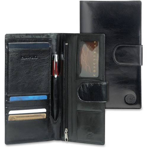 MANCINI EQUESTRIAN-2 Carrying Case (Wallet) Passport, Credit Card, Ticket - Black - Top Grain Leather - 5" (127 mm) Height x 4.75" (120.65 mm) Width