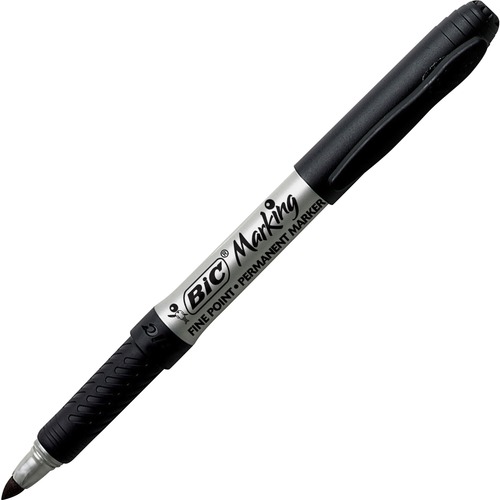 BIC Mark-it Fine Point Permanent Markers - Fine Marker Point - Assorted - Silver Barrel - 24 / Box