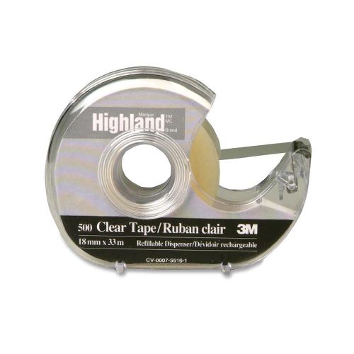 3M Highland Crystal Clear Transparent Tape - 0.75" (19 mm) Width x 36 yd (32.9 m) Length - 1" Core - 1 Each - Clear