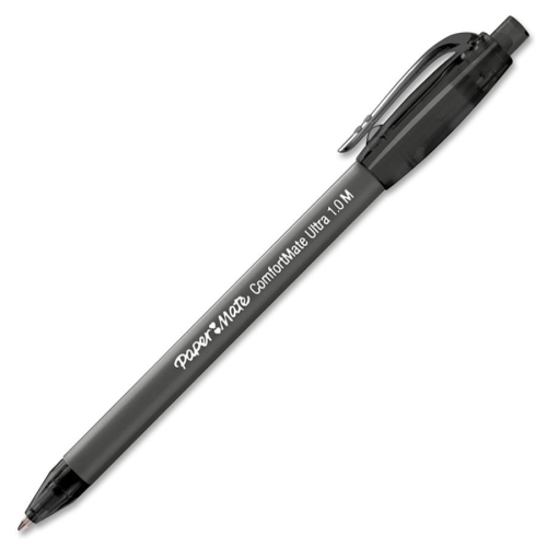 Paper Mate Comfort Mate Retractable Pens - Medium Pen Point - Black - Rubber Barrel - 12 / Dozen