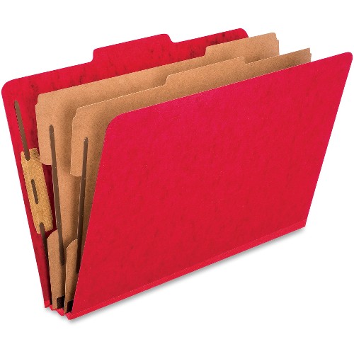 Classification folders feature durable, 20 point Pressboard covers to resist moisture and dirt. Each cover has a 2" capacity bonded fastener. The two dividers with 1/3-cut tabs are made of top quality 17 point kraft stock and have 1" capacity two-way fasteners. Each folder offers a 2/5-cut tab, 2" expansion and reinforced tape gussets.