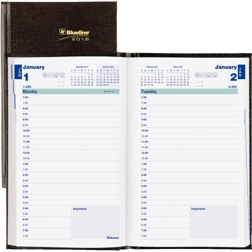 Blueline Hardbound English Daily Planner - Daily - 1 Year - January 2020 till December 2020 - 7:00 AM to 7:30 PM - 5" x 8" - Black