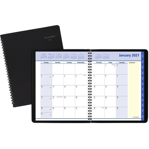 At-A-Glance QuickNotes Monthly Planner - Yes - Monthly - 1 Year - January 2020 till December 2020 - 1 Month Double Page Layout - 6 7/8" x 8 3/4" - Wire Bound - Black - Simulated Leather - Pocket, Address Directory, Phone Directory, Notes Area