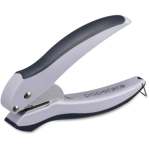 Equipped with ProPunch technology, this one-hole punch easily and cleanly slices through up to 10 sheets with 50 percent less effort. Designed for frequent handling, the smooth, ergonomic, nonslip grip handle is made to fit comfortably in the curves of your hand. Clever, in-handle, chip collection compartment has an easy-open door for mess-free disposal. Handles lock closed for compact storage.