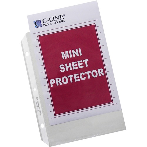 C-Line Top Load Heavyweight Mini Sheet Protectors - 5 1/2" x 8 1/2" Sheet - 3 x Holes - Ring Binder - Clear - Polypropylene - 50 / Box