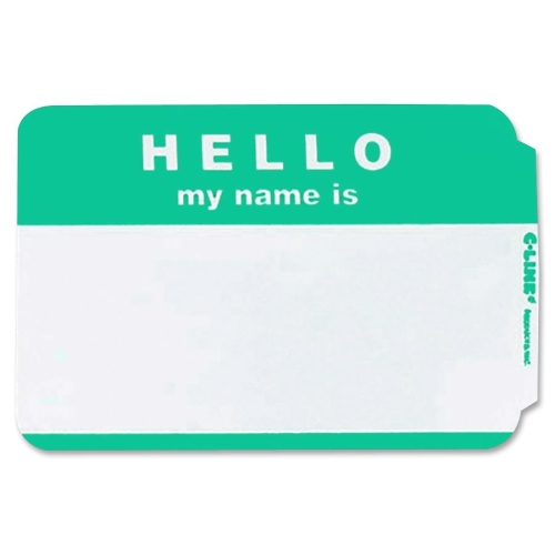 C-Line Hello My Name Is Adhesive Name Badges - "Hello My Name Is" - 3 1/2" Width x 2 1/4" Length - Rectangle - Green - 100 / Box