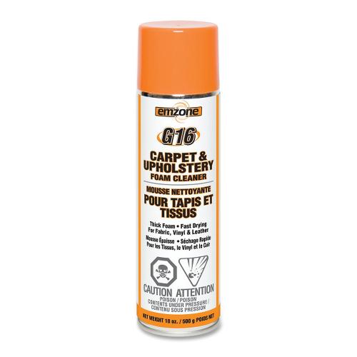 Carpet and upholstery foam cleaner is specially formulated for quick, easy cleaning of carpets, fabric, vinyl and leather. Thick foam gently lifts and cleans dirt, grease, grime and stains without saturating carpet or fabric. After cleaning, foam dries quickly to prevent resoiling. Leaves no residue behind. Carpet and upholstery foam cleaner is Ideal for spot cleaning in home, office, car or truck.
