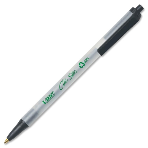 Ecolutions Retractable Ballpoint Pen is made with a high percentage of recycled plastic and packaged with paper a high percentage of recycled fibers. Tip, clip and plunger top color match ink color. Nonrefillable ballpoint pen has a break-resistant pocket clip and medium point.